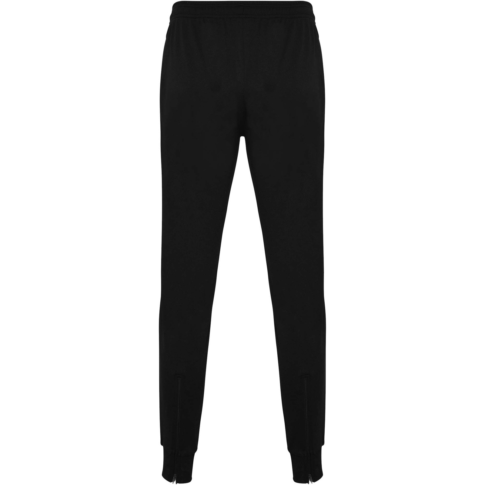 Bukser med justerbar elastisk taljebånd med indvendig snøre. Sidelommer. Manchetter og lynlås på nederste del af benet. Aftagelig etiket.