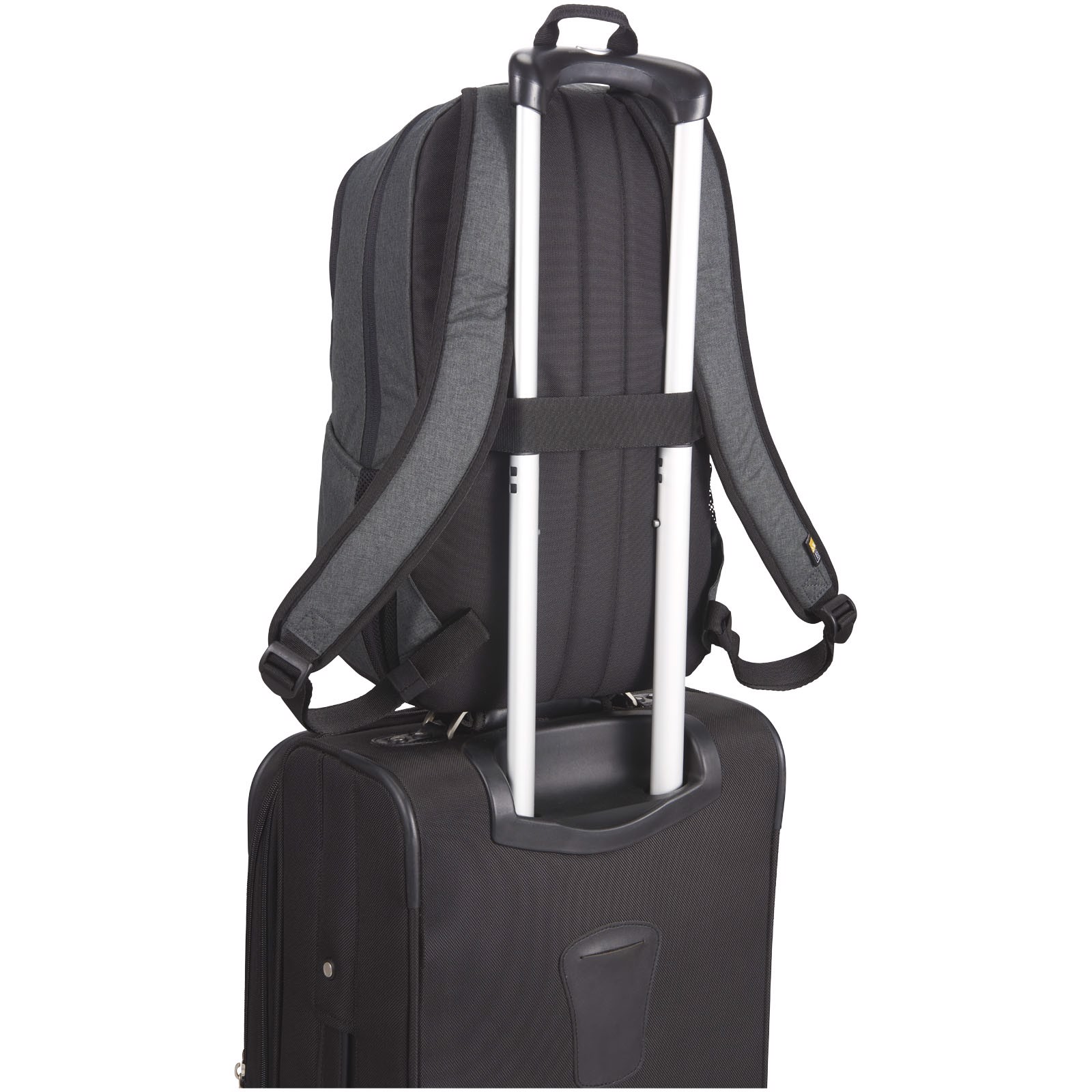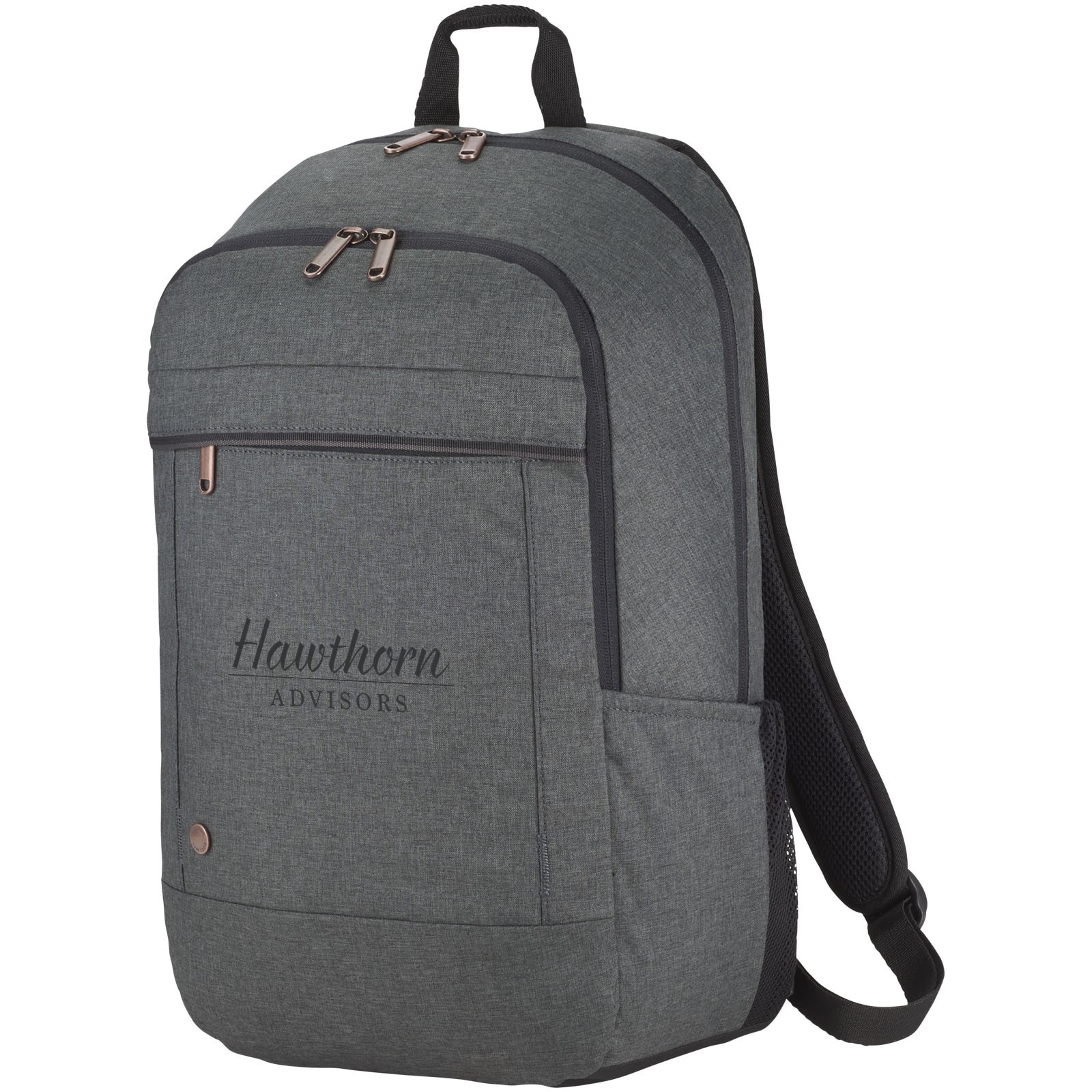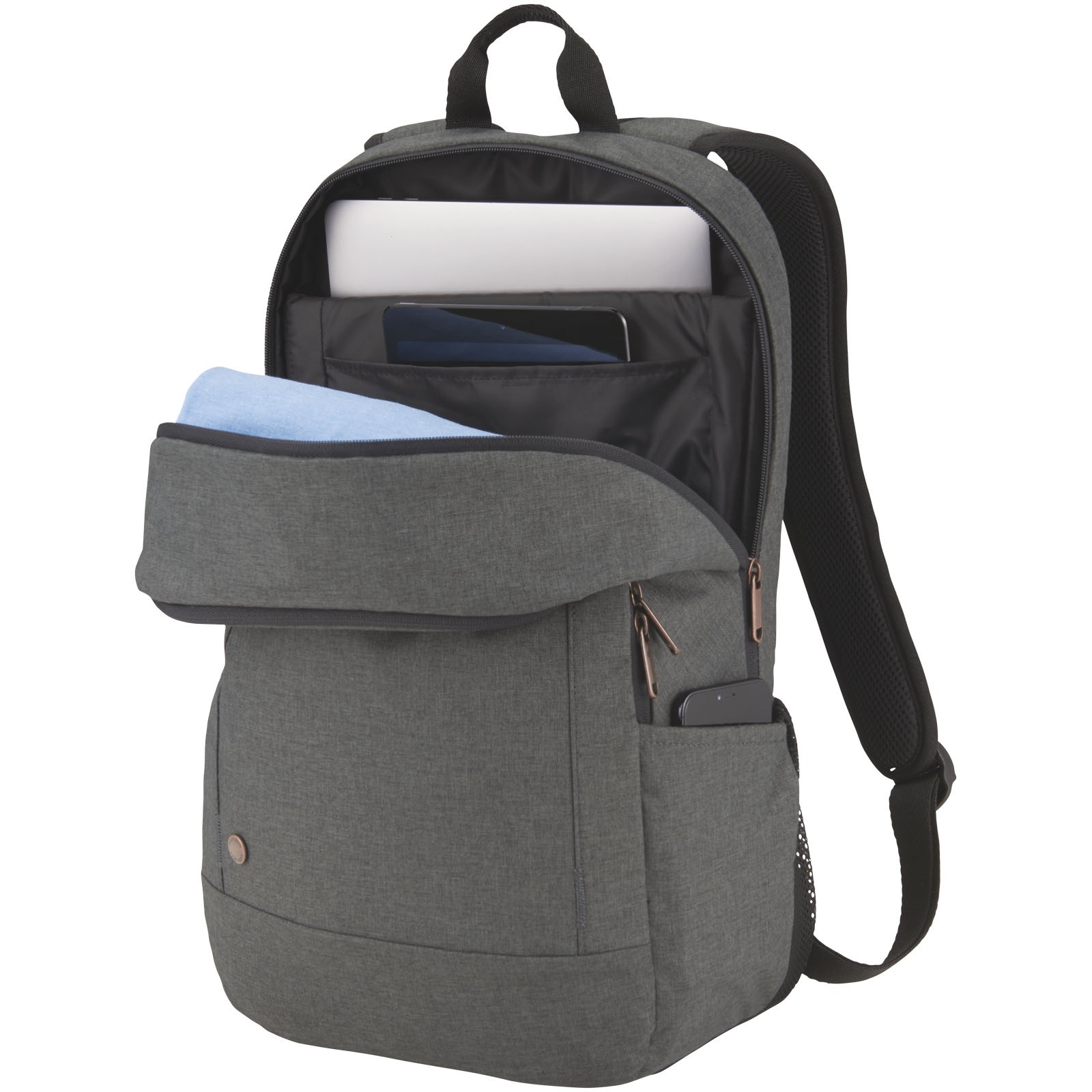 En professionel laptoprygsæk, perfekt til dem, der kan lide at afbalancere komfort og stil. Det rummelige hovedrum har tykt polstret opbevaring til en bærbar computer op til 15 "og en dedikeret glidelomme til en 10,5" tablet. Der er et ekstra rum til opbevaring af powerbank samt en lettilgængelig forlomme til småt elektronik. To sidelommer giver nem adgang til vandflasker eller udvalgte emner. Bagbagagestroppen fastgør posen sikkert til de fleste rullende kufferter. Lyng-materiale, kobberberøringspunkter og pyntedetaljerne skaber et moderne professionelt look.