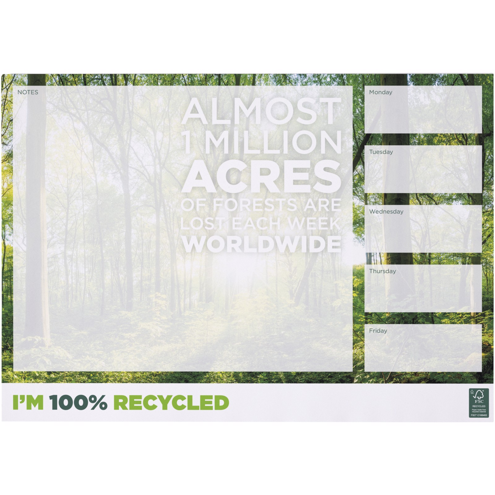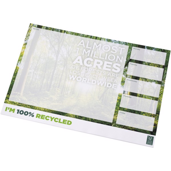 Hvid A3 Desk-Mate® notesblok med 80g/m2 genanvendt papir. Fuldfarvet tryk tilgængeligt på hver side. Findes i 3 størrelser (25/50/100 ark).