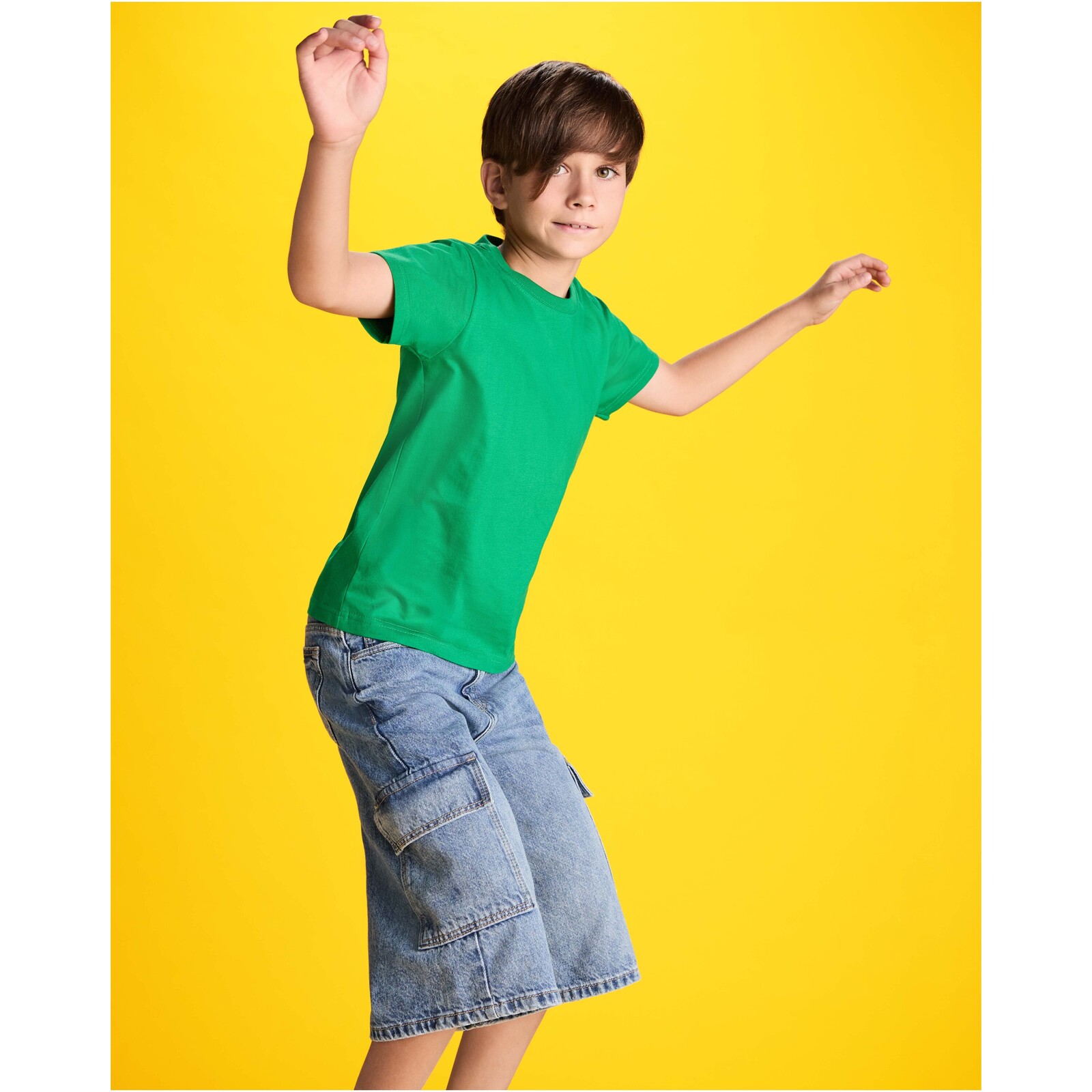 Kortærmet t-shirt med 4-lags rund hals og forstærkede dækkede sømme i krave og skuldre. Sidesømme.