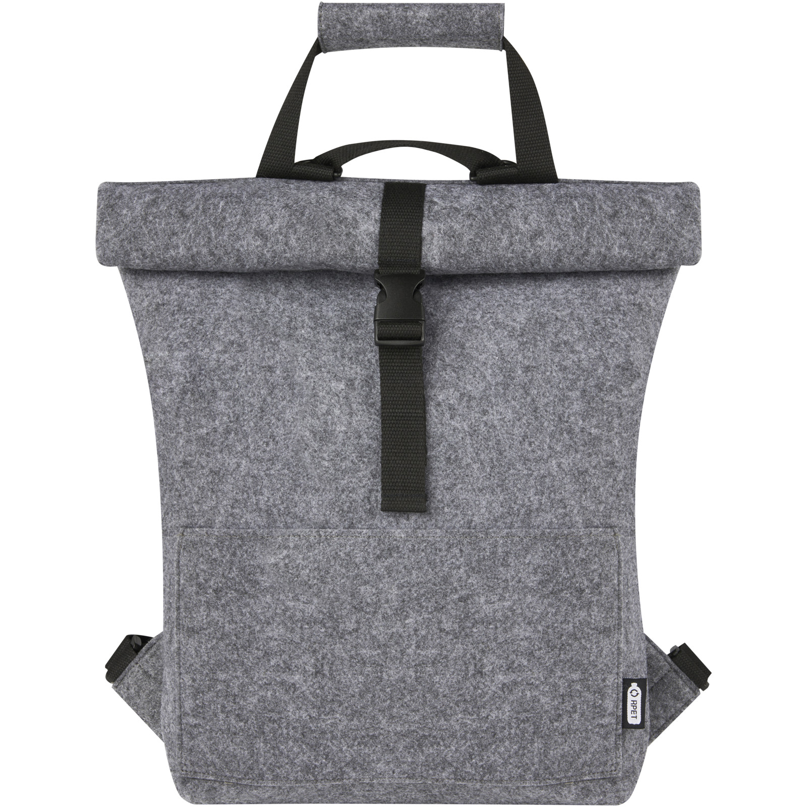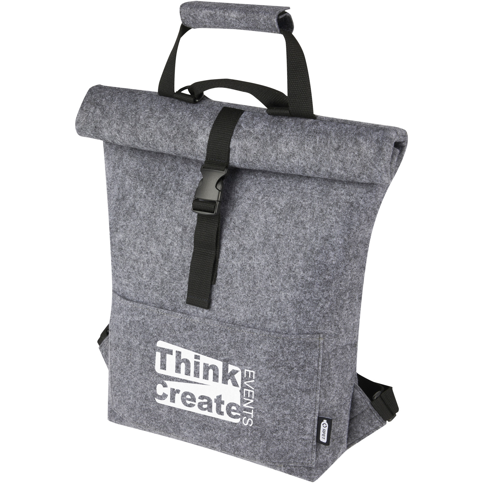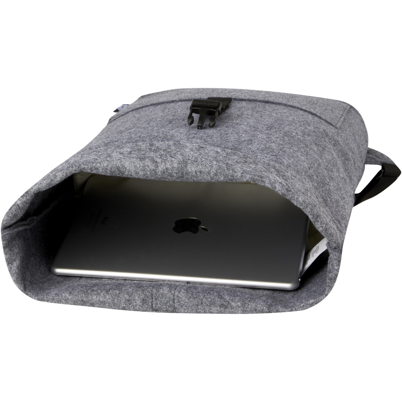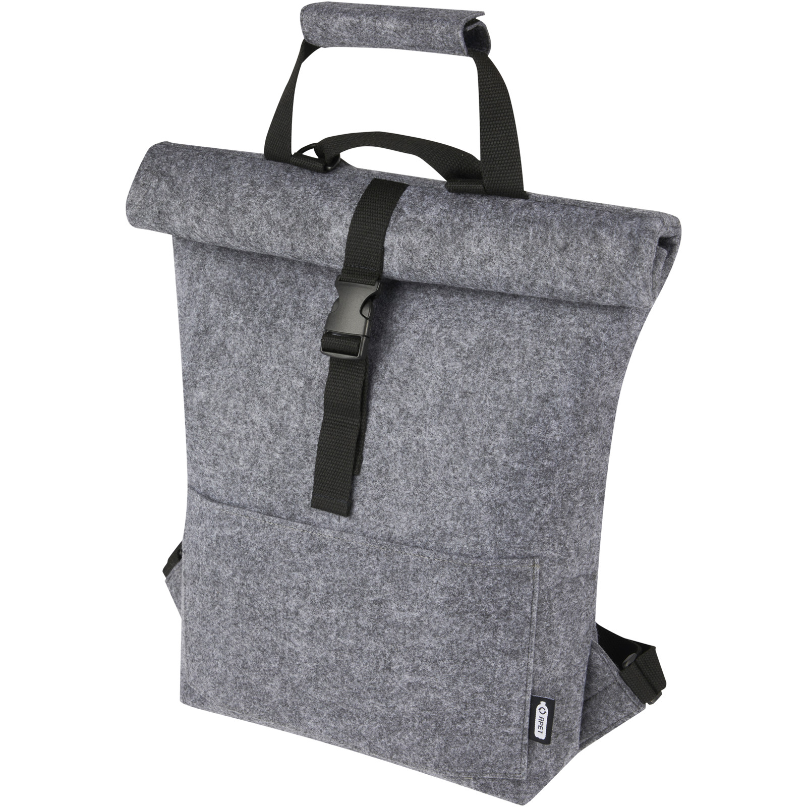Multifunktionel og trendy kombineret rygsæk og cykeltaske med rullelukning fremstillet af blød og holdbar GRS certificeret genbrugsfilt i høj kvalitet. Har stort hovedrum, forlomme, justerbare skulderstropper og tre velcrostropper, hvormed tasken kan fastgøres på bagsiden af en cykel. Skulderstroppen kan nemt blive til en lang bærestrop eller vikles sammen, så stroppen ikke fanges i cykelhjulene.