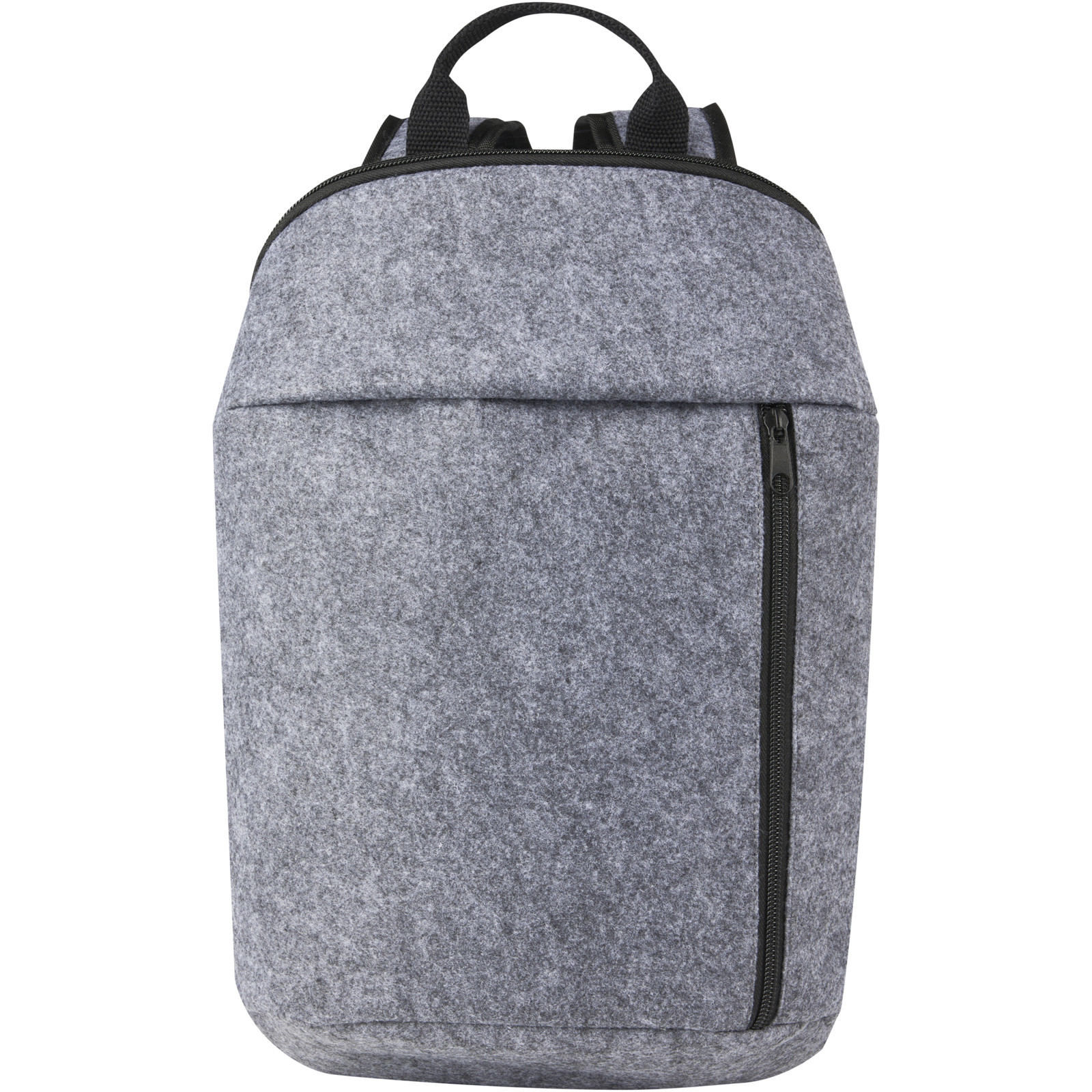 Praktisk kølerygsæk fremstillet af blødt og holdbar GRS certificeret genbrugsfilt i høj kvalitet. Det har et hovedrum med lynlås, der er foret med fødevaresikker termisk PEVA isolering med høj densitet, der holder drikkevarer og forfriskninger kolde i timevis. Frontlomme med lynlås. Justerbare skulderstropper og et vævet bærehåndtag i bomuld. Let at rengøre. Kapacitet: 7 liter.