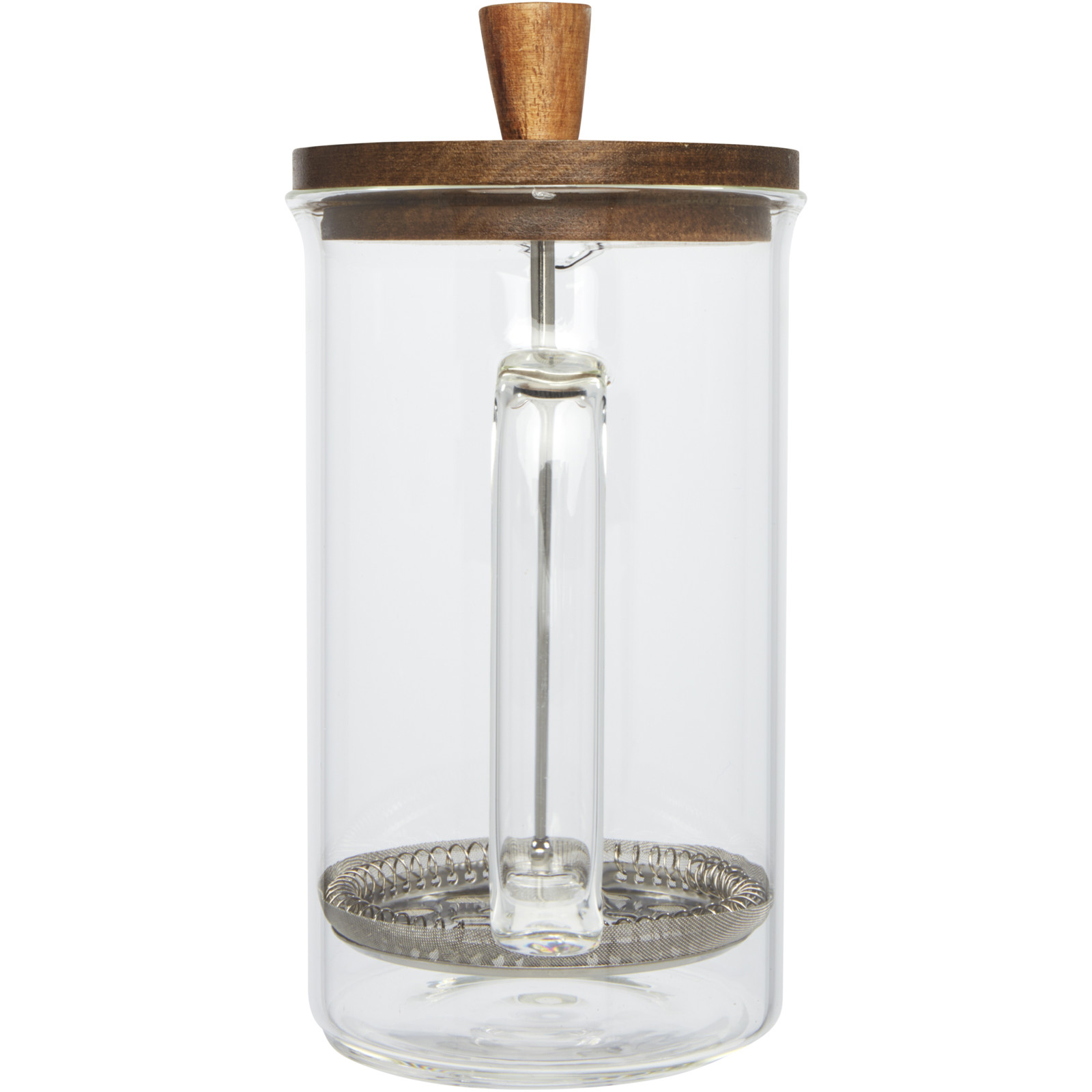 Fransk kaffepresse med elegant design og akacietræ låg, som er fra bæredygtige, miljømæssigt og socialt ansvarlige kilder. Rumindholdet er 600 ml. Forbered dine friskbryggede 3 kopper kaffe på bare et par minutter. Tilsæt grovmalet kaffe til glaskanden. Fyld med varmt vand, og lad det trække efter smag. Tryk kolben langsomt ned. Din kaffe er klar! Derudover kan du også tilberede te, varm chokolade, mælk, frugt te og limonade. Det borosilikatglas gør din franske presse ikke kun til et flot blikfang i dit køkken, men også meget vigtig for dine eventyr og udflugter.