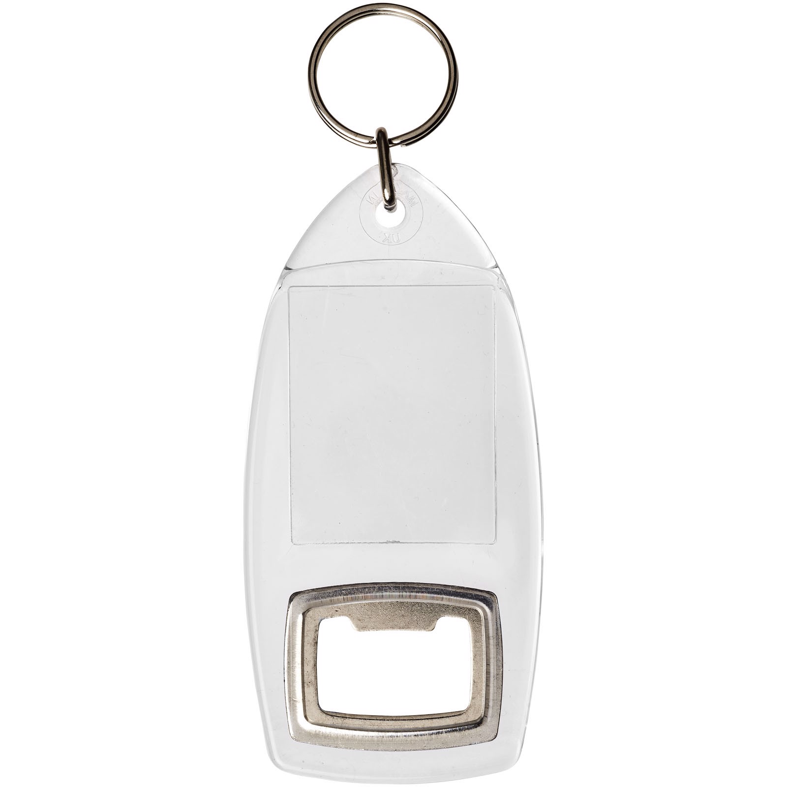 Klart R1 nøglering med oplukker og metal split nøglering. Den snoede metalring har en flad profil, som er ideel til forsendelser. Udskriv indlagte dimensioner: 4,0 cm x 3,2 cm.