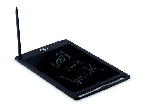 LCD skrive tablet 8.5 ''inklusiv skrive stylus. Tryk på knappen for at slette din tegning. Den tynde form gør det til en ideel ting at tage med dig overalt. 1 CR2016 batteri inkluderet.