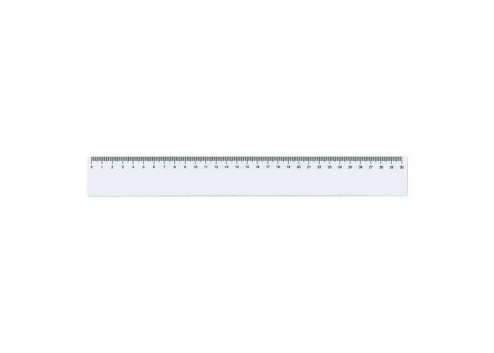 Hvid syntetisk lineal 30 cm.