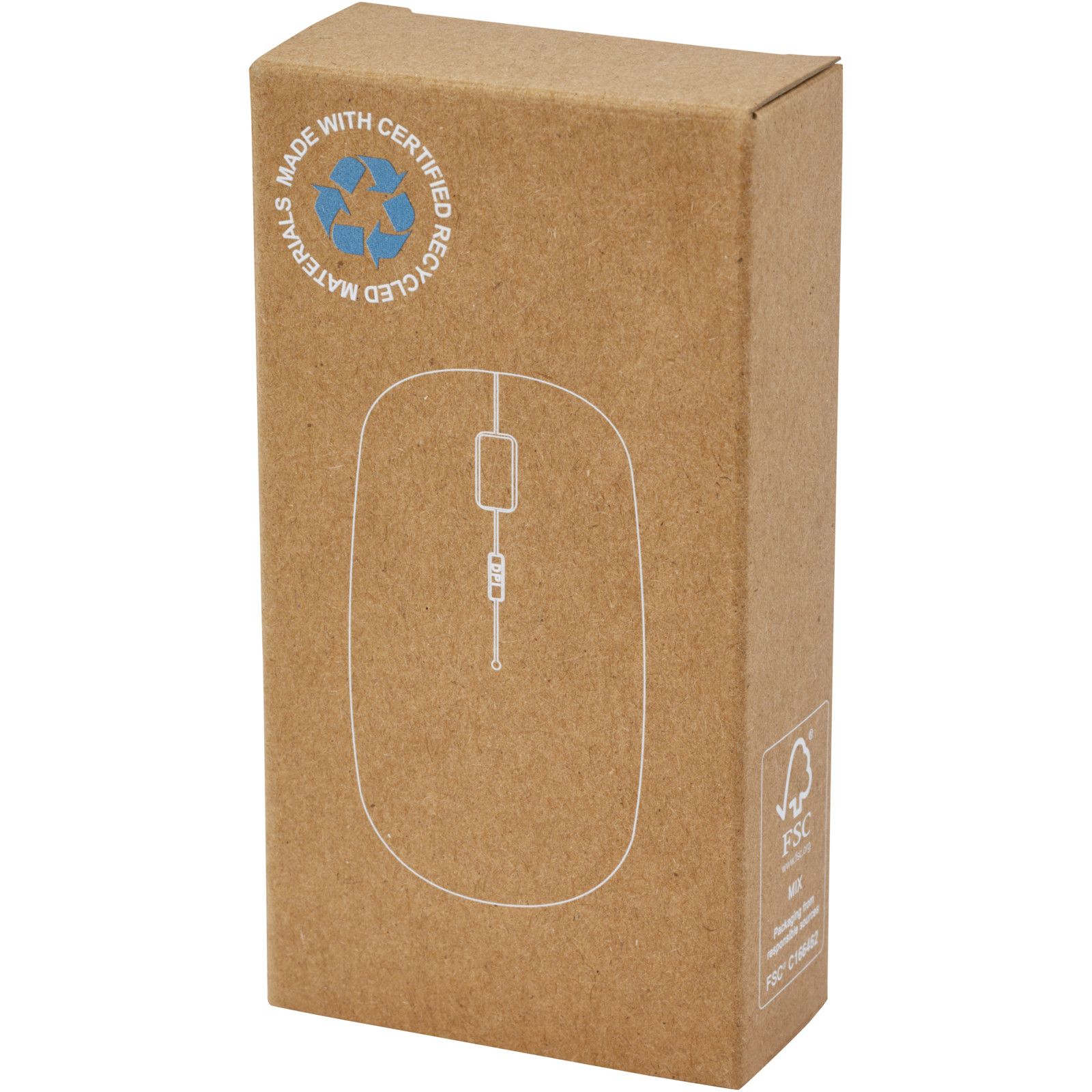 Stilfuld og lysstærk optisk mus med fire knapper lavet af genbrugsplastik, med USB modtager til trådløs RF forbindelse og en speciel DPI funktion (800/1200/1600 DPI). DPI knappen gør det muligt hurtigt at ændre musens følsomhed, hvilket er meget praktisk til gaming. Kræver 2 AAA batterier (medfølger ikke). Kompatibel med Windows og Mac operativsystemer. Leveres i en æske af kraftpapir.