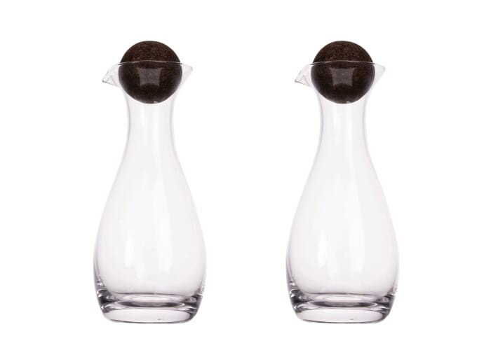 Små glasflasker med en mørk korkbold - en sød og klassisk kombination, der aldrig går af mode. Vi elsker kork, som er det mest holdbare af alle organiske materialer. Og så er det helt uigennemtrængeligt for væske. Brug flaskerne til olie og eddike, som mælkekande, lille vinkaraffel eller til hjemmelavet dressing. Leveres i 2-pak. Sagaforms produkter er ikke til salg i Skandinavien, Finland .