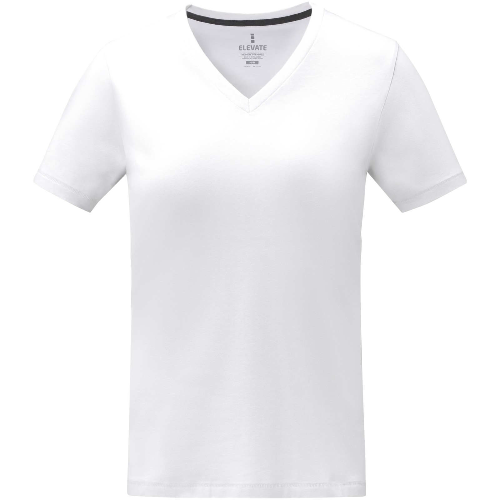 Somoto kortærmet V-hals t-shirt til kvinder i 160 g/m² bomuld er perfekt til enhver lejlighed og er en komfortabel tilføjelse til enhver garderobe. Ringspundet bomuld giver et stærkere og mere glat garn, der resulterer i et mere holdbart stof, der garanterer branding af høj kvalitet. Den er formet til et feminint look og har sidesømme for at sikre en god pasform, og V-halsdesignet tilføjer et strejf af stil. Det trykte Elevate mærke i nakken bidrager også til den overordnede komfort, og de forstærkede skuldre sikrer en kontinuerlig pasform selv efter langvarig brug.