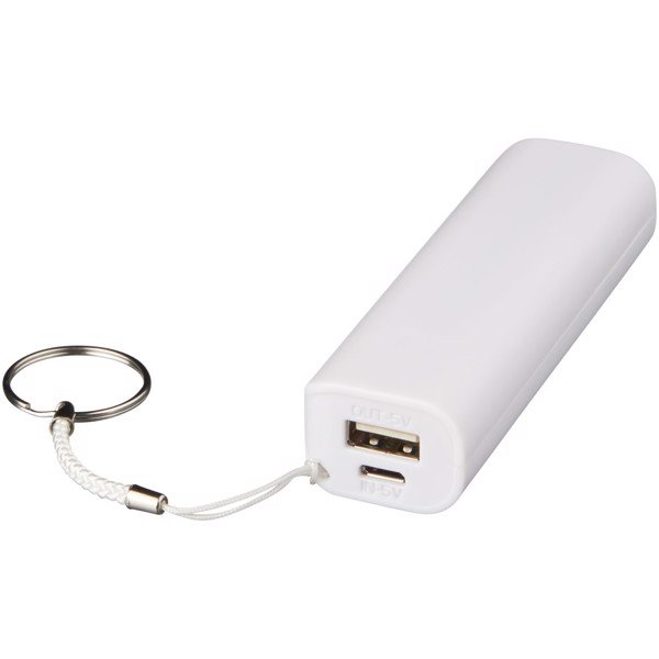 Denne powerbank med genopladeligt lithium ion batteri på 1200 mAh giver strøm til din elektroniske enhed. Nøgleringen gør den let at have med, så du aldrig løber tør for power. Inkl. USB til micro USB ladekabel. Indgang 5V/1A. Leveres i hvid æske.