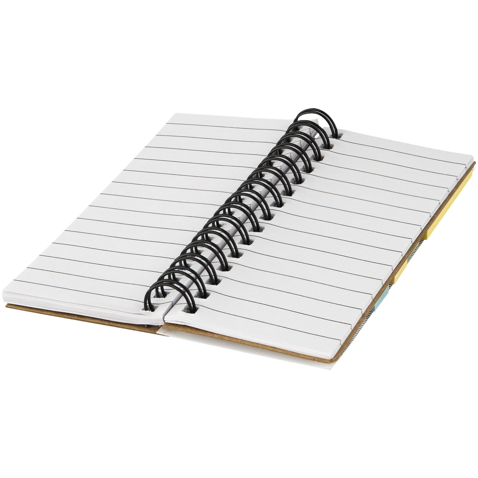 Notesbog med 25 klæbesedler i 5 forskellige farver, klæbeblok med 25 sider samt 40 sider linjeret, hvidt papir. Med lineal på forsiden.