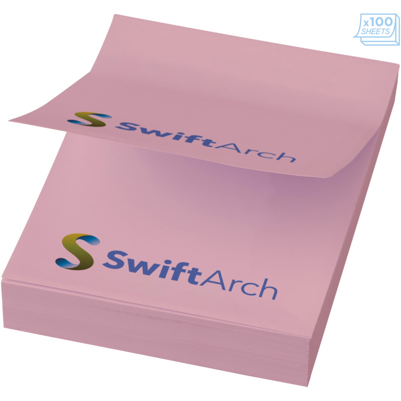 Sticky-Mate® selvklæbende memoblok med blanke papirark på 80 g/m2 som findes i forskellige farver. Fuldfarvet tryk tilgængeligt på hver side. Findes i tre forskellige størrelser (25/50/100 ark).