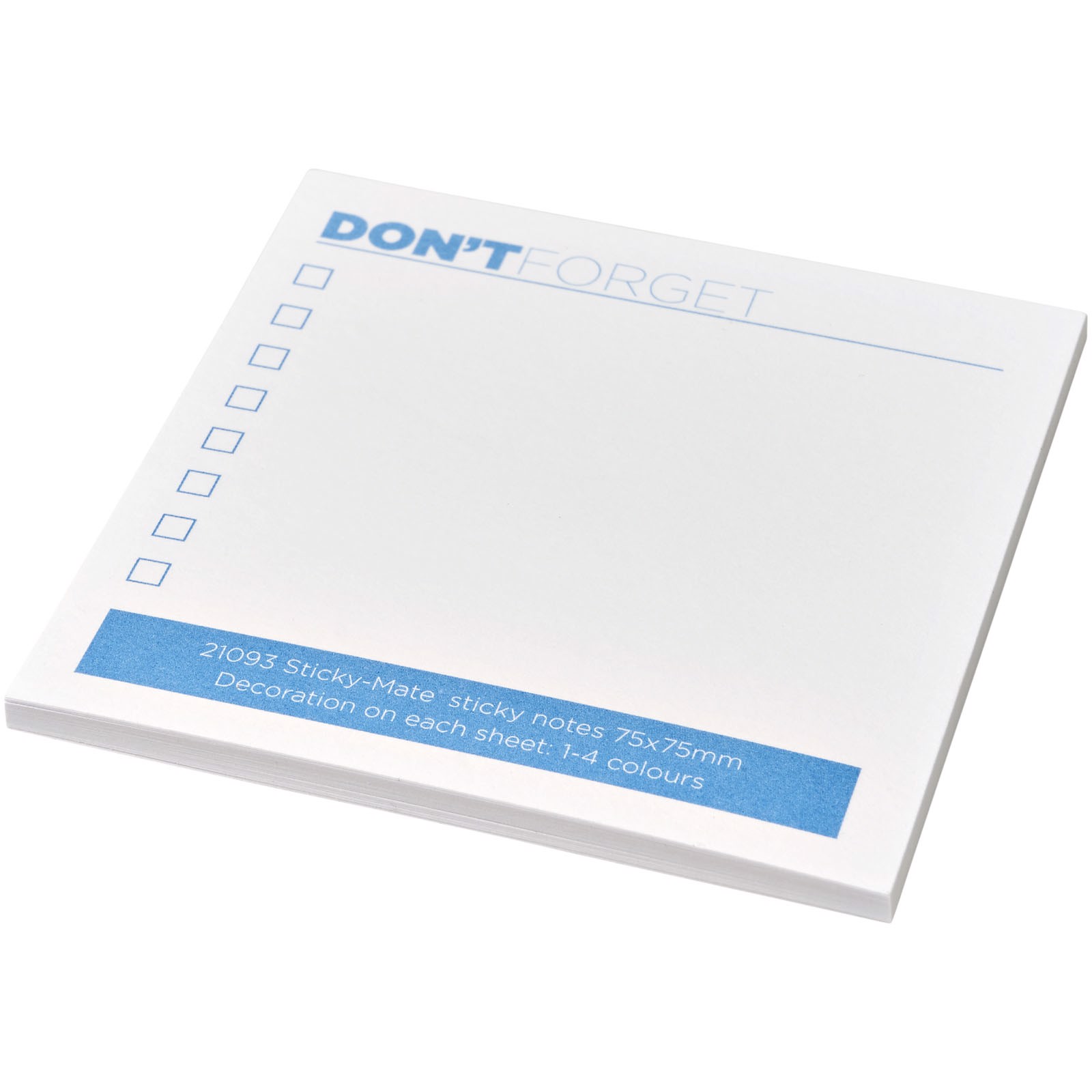 Sticky-Mate® selvklæbende memoblok med blanke papirark på 80 g/m2 som findes i forskellige farver. Fuldfarvet tryk tilgængeligt på hver side. Findes i tre forskellige størrelser (25/50/100 ark).
