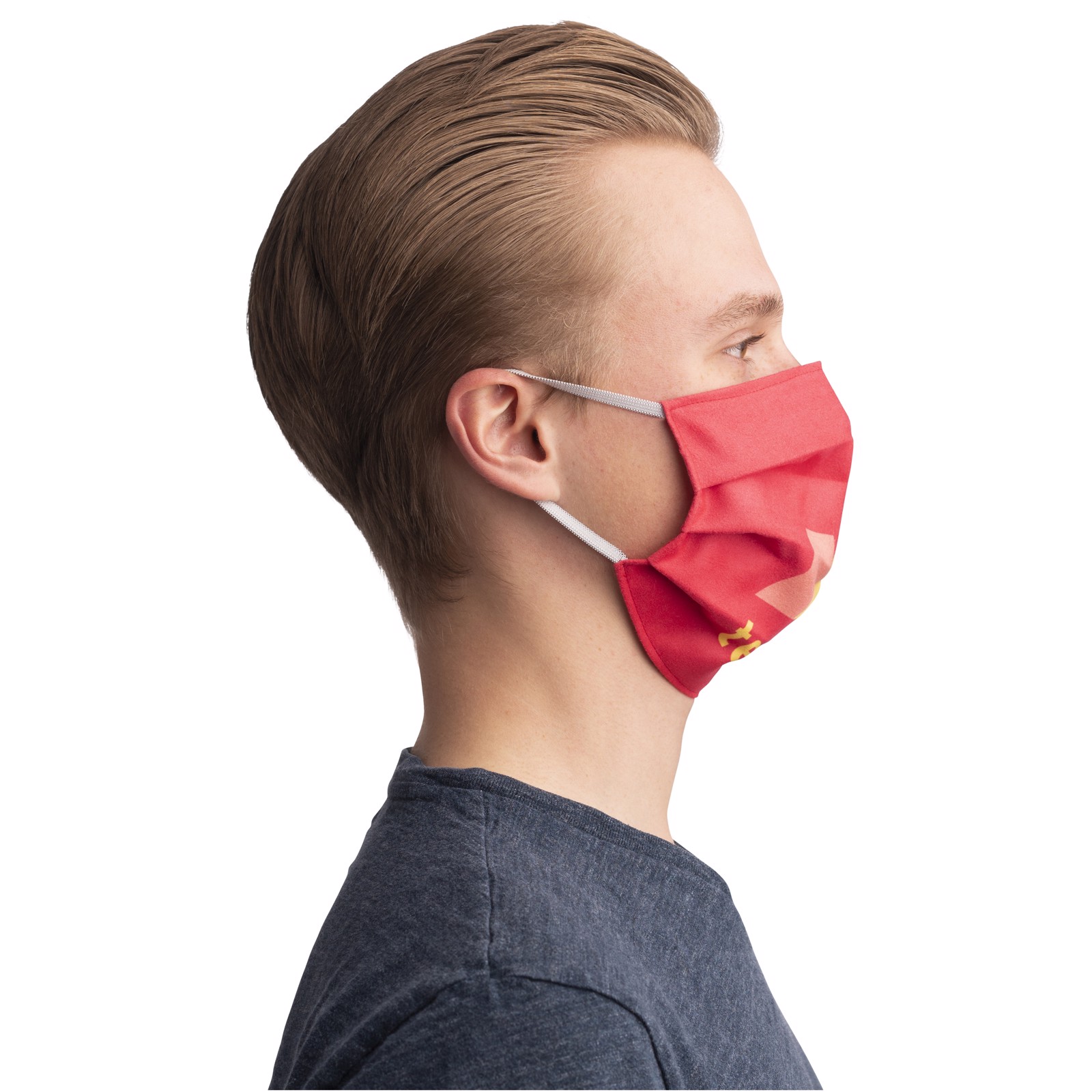 Sublimation maske med fuld farvet logo på 1 side og hvid bagside. Elastik bånd finde i sort eller hvide. Masken beskytter ikke mod infektion, men kan være forebyggende. Produktet er ikke sterilt og skal vaskes ved 60 grader inden anvendelse. Enkelt pakket i polybag inkl. vakseanvisning. Materialet overholder OEKO-TEX test standarder.