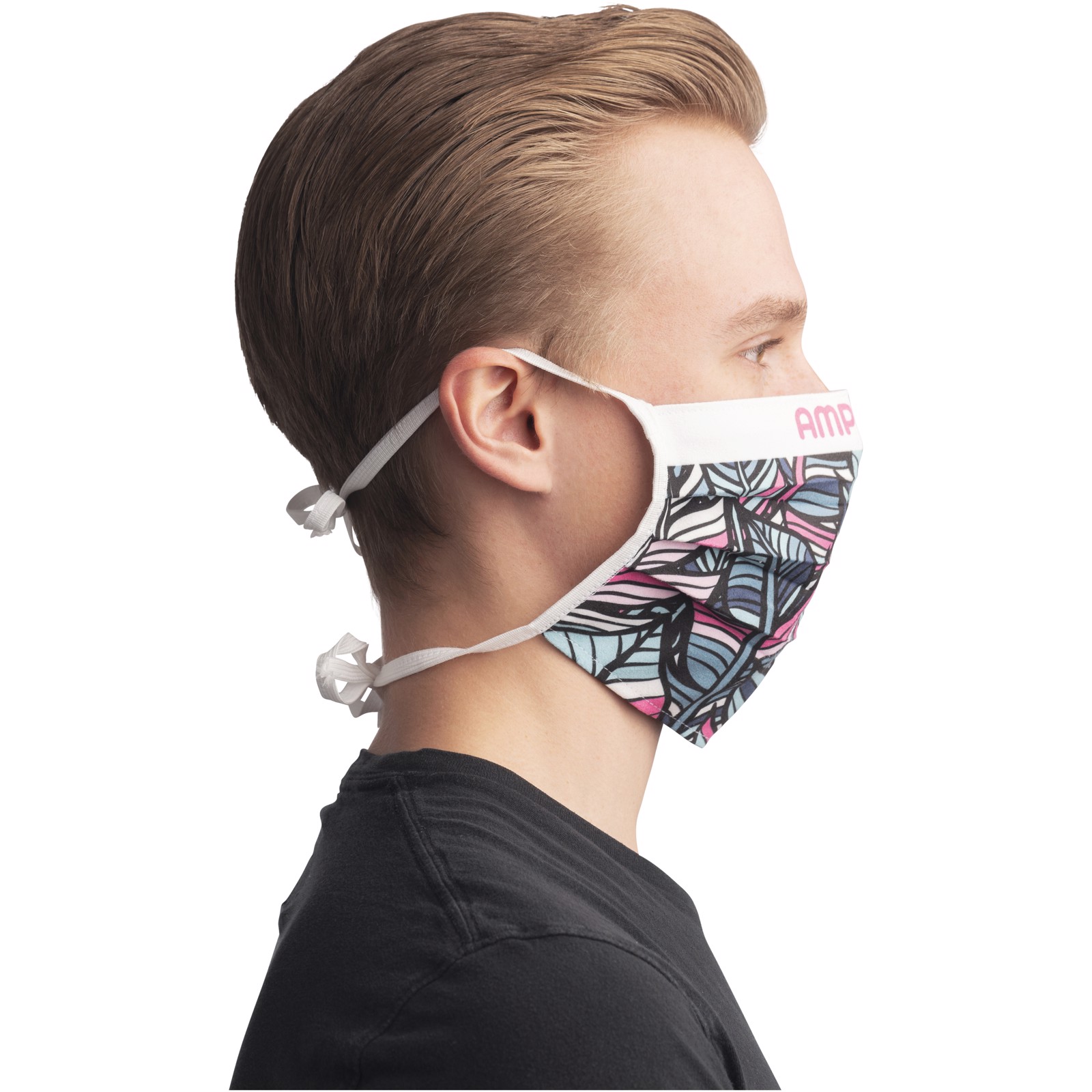 Sublimation maske med fuld farvet logo på 1 side. Bagsiden og snore er hvid. Masken beskytter ikke mod infektion, men kan være forebyggende. Produktet er ikke sterilt og skal vaskes ved 60 grader inden anvendelse. Enkelt pakket i polybag inkl. vakseanvisning. Materialet overholder OEKO-TEX test standarder.