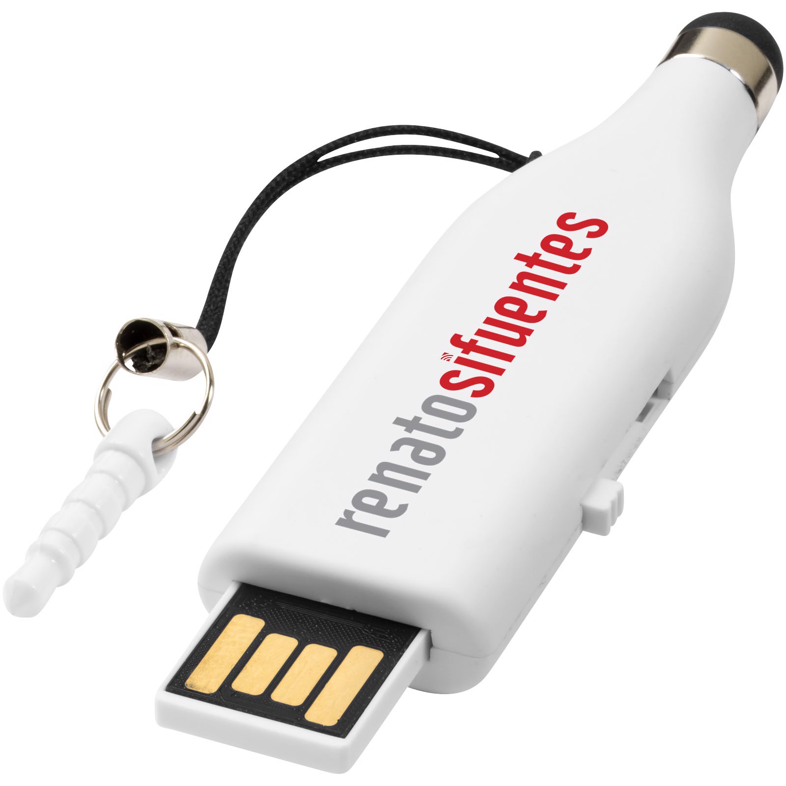 Multifunktionelt USB stik med stylus funktion samt kobling så du kan sætte den i phone stik på din telefon eller tablet. Stylus på anvendes på din touchscreen.